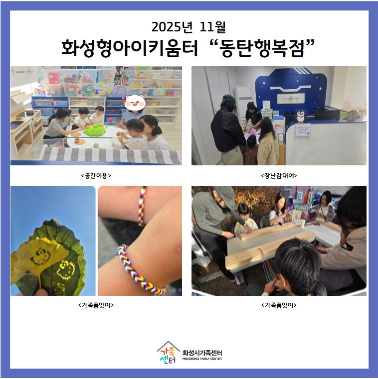 * »ç¾÷¸í : ȼºÇü¾ÆÀÌŰ¿òÅÍ(µ¿ÅºÇູ) 11¿ù »ç¾÷ * ÀϽà : 2025³â 11¿ù ¿ù~±Ý(09:00~18:00) / Åä(9:00~13:00) (Àå³°¨ ´ë¿©¸¸ °¡´É) * Àå¼Ò : ȼºÇü¾ÆÀÌŰ¿òÅÍ µ¿ÅºÇູÁ¡ * ´ë»ó : ȼºÇü¾ÆÀÌŰ¿òÅÍ È¸¿ø * ³»¿ë : °ø°£ÀÌ¿ë, Àå³°¨´ë¿©, ÇÁ·Î±×·¥, °¡Á·Ç°¾ÑÀÌ
