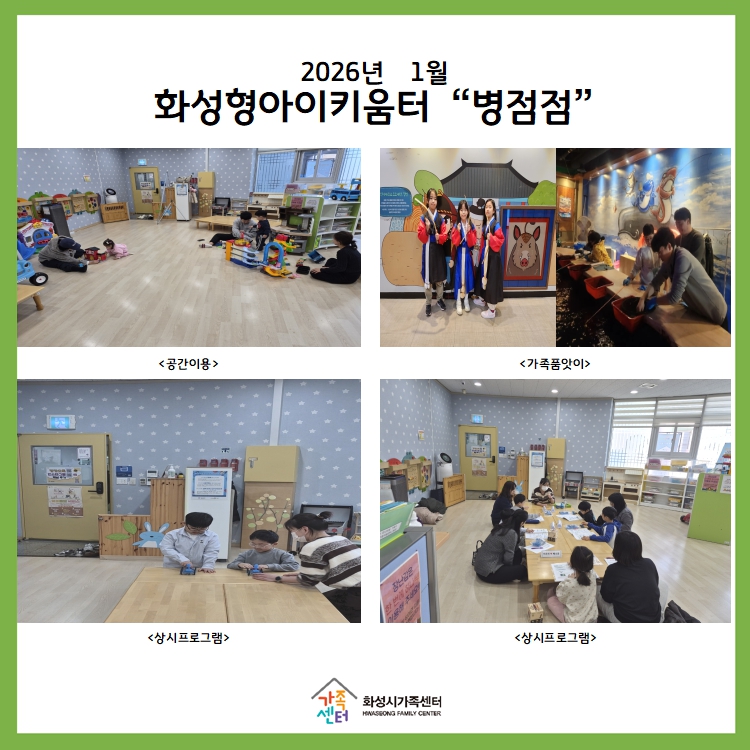 * »ç¾÷¸í : ȼºÇü¾ÆÀÌŰ¿òÅÍ(º´Á¡) 1¿ù »ç¾÷ * ÀÏ ½Ã : 2026³â 1¿ù ¿ù~±Ý (13:00~18:00) * Àå ¼Ò : ȼºÇü¾ÆÀÌŰ¿òÅÍ º´Á¡Á¡ * ´ë »ó : ȼºÇü¾ÆÀÌŰ¿òÅÍ È¸¿ø * ³» ¿ë : °ø°£ÀÌ¿ë, °¡Á·Ç°¾ÑÀÌ