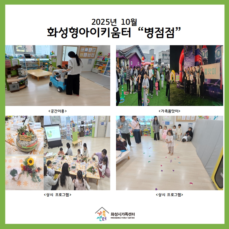 * »ç¾÷¸í : ȼºÇü¾ÆÀÌŰ¿òÅÍ(º´Á¡) 10¿ù »ç¾÷ * ÀÏ ½Ã : 2025³â 10¿ù ¿ù~±Ý (13:00~18:00) * Àå ¼Ò : ȼºÇü¾ÆÀÌŰ¿òÅÍ º´Á¡Á¡ * ´ë »ó : ȼºÇü¾ÆÀÌŰ¿òÅÍ È¸¿ø * ³» ¿ë : °ø°£ÀÌ¿ë, °¡Á·Ç°¾ÑÀÌ, ÇÁ·Î±×·¥